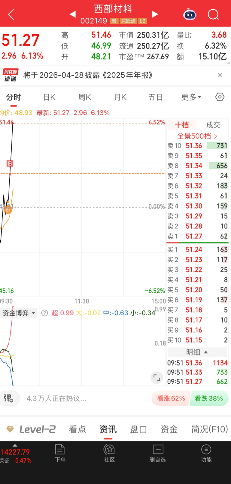 $西部材料(SZ002149)$ 两个点的时候买入两万,点成了全仓买入,怎么办,好慌啊
