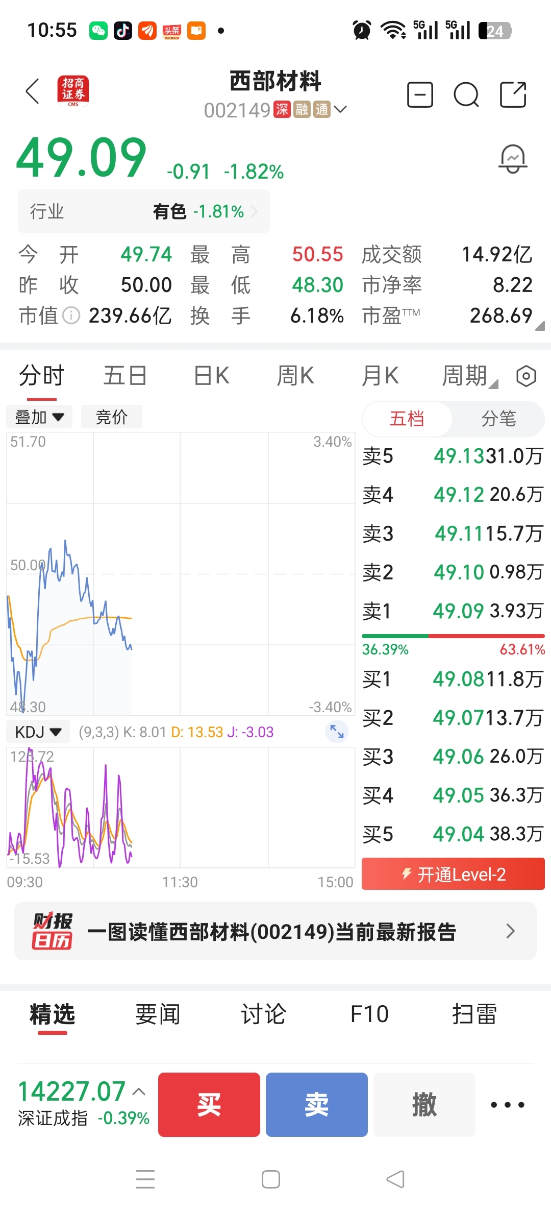 $西部材料(SZ002149)$ 典型的急拉慢出货