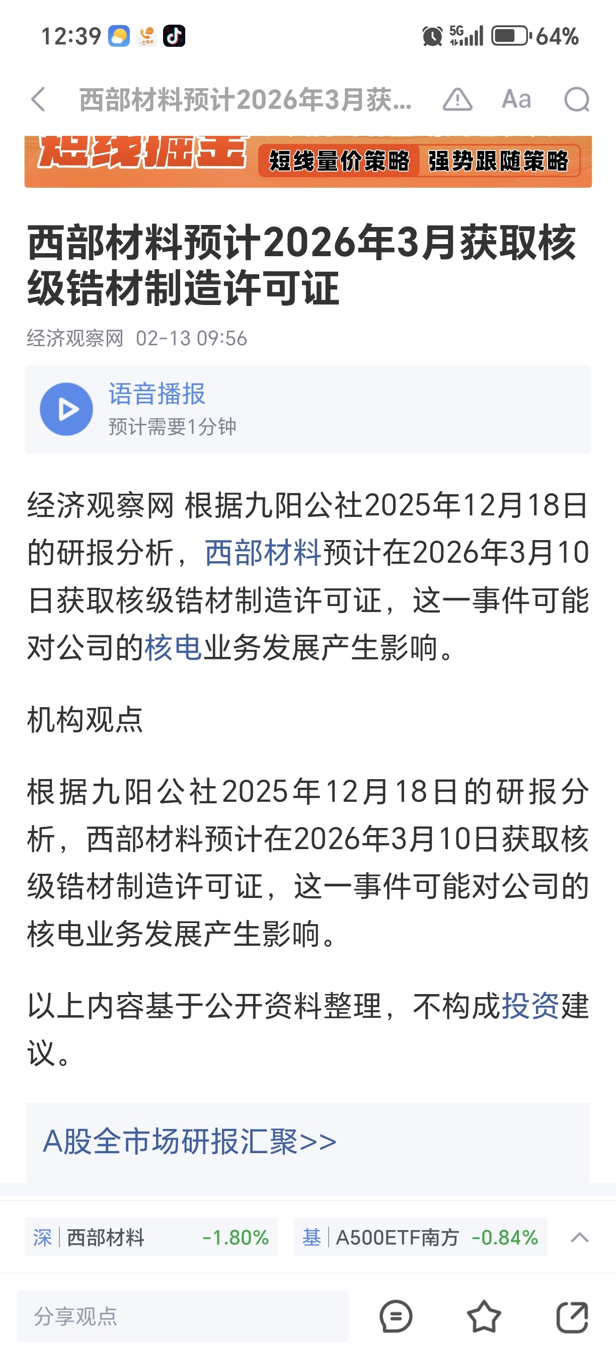 $西部材料(SZ002149)$ 核电航天特种稀有材料龙头,高精尖,这会不抢,年后后悔没上车