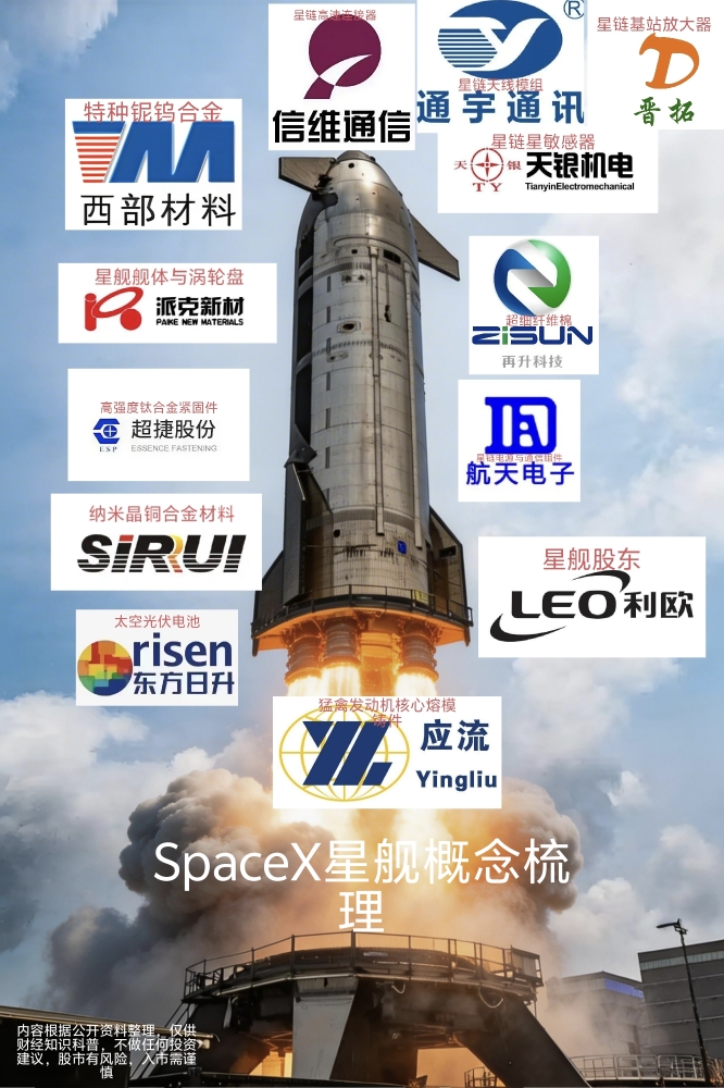 $利欧股份(SZ002131)$ $西部材料(SZ002149)$ $再升科技(SH603601)$ SpaceX星舰概念梳理
