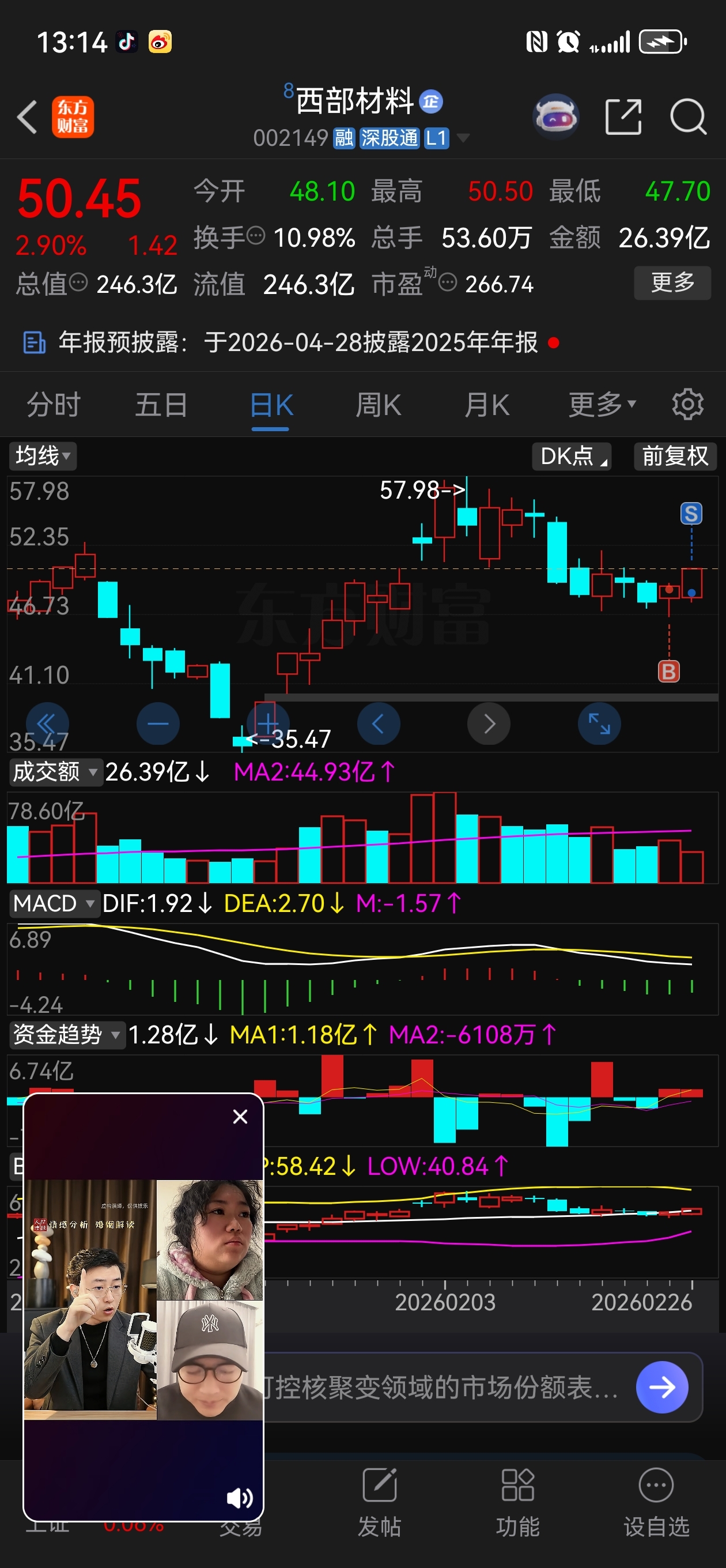 $西部材料(SZ002149)$ 早上挨一耳光跑的,妥妥的韭菜又被割了一道