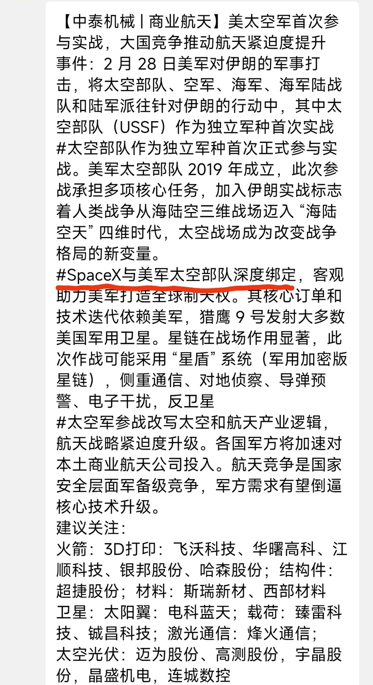 从美伊动手看到了星辰大海。spacex系列标的定等熠熠生辉