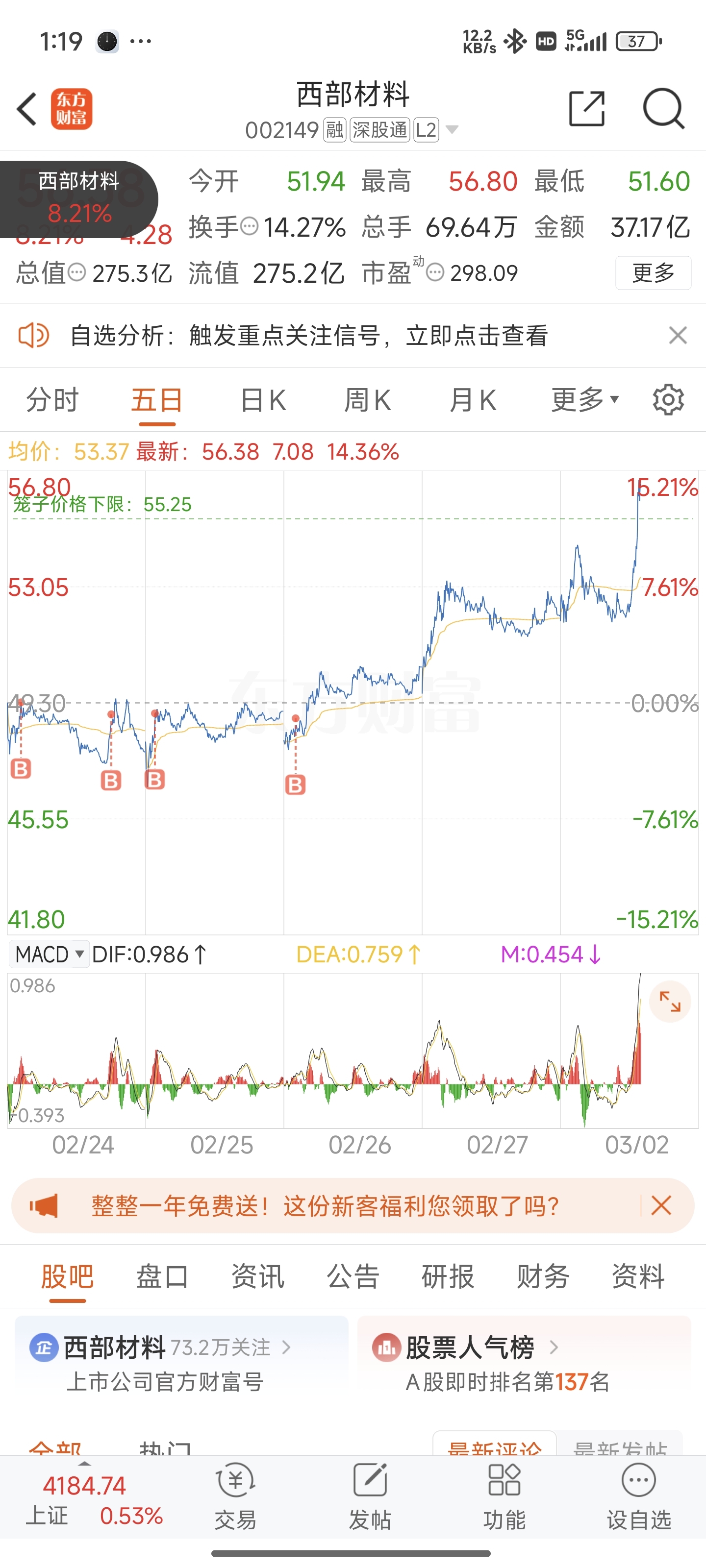 $西部材料(SZ002149)$ 只加不卖,每天看着他老奶奶下楼都没做t,理应来一根涨停惩罚一下这些做t的,嘉奖一下我