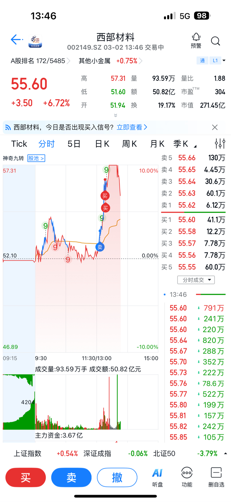 $西部材料(SZ002149)$ 我去了 卖了又追 十多亿封单一下没了