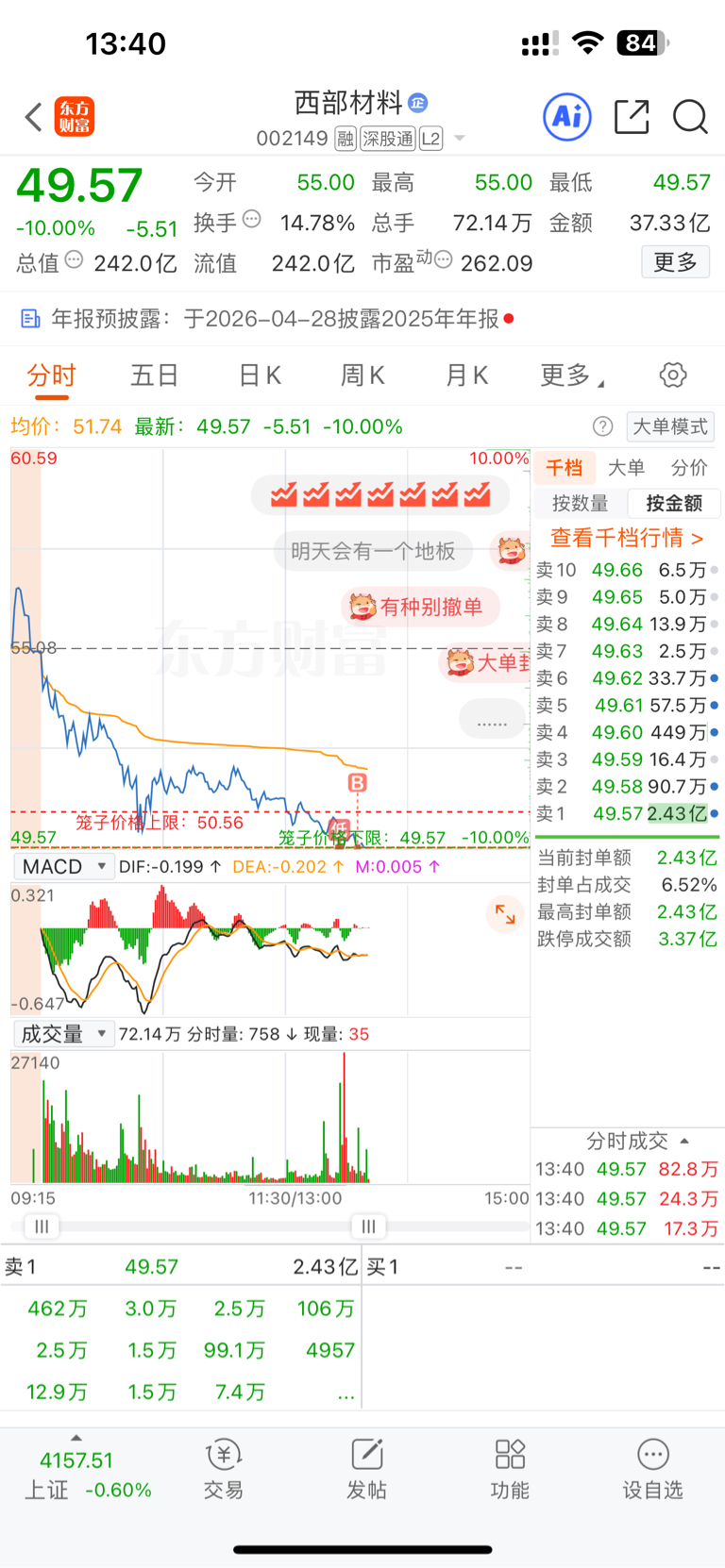 温馨提示: 1.根据《证券法》规定,禁止编造、传播虚假信息或者误导性信息,扰乱证券市场;2.用户在本社区发表的所有资料、言论等仅代表个人观点,与本网站立场无关,不对您构成任何投资建议。用户应基于自己的独立判断,自行决定证券投资并承担相应风险。《东方财富社区管理规定》
