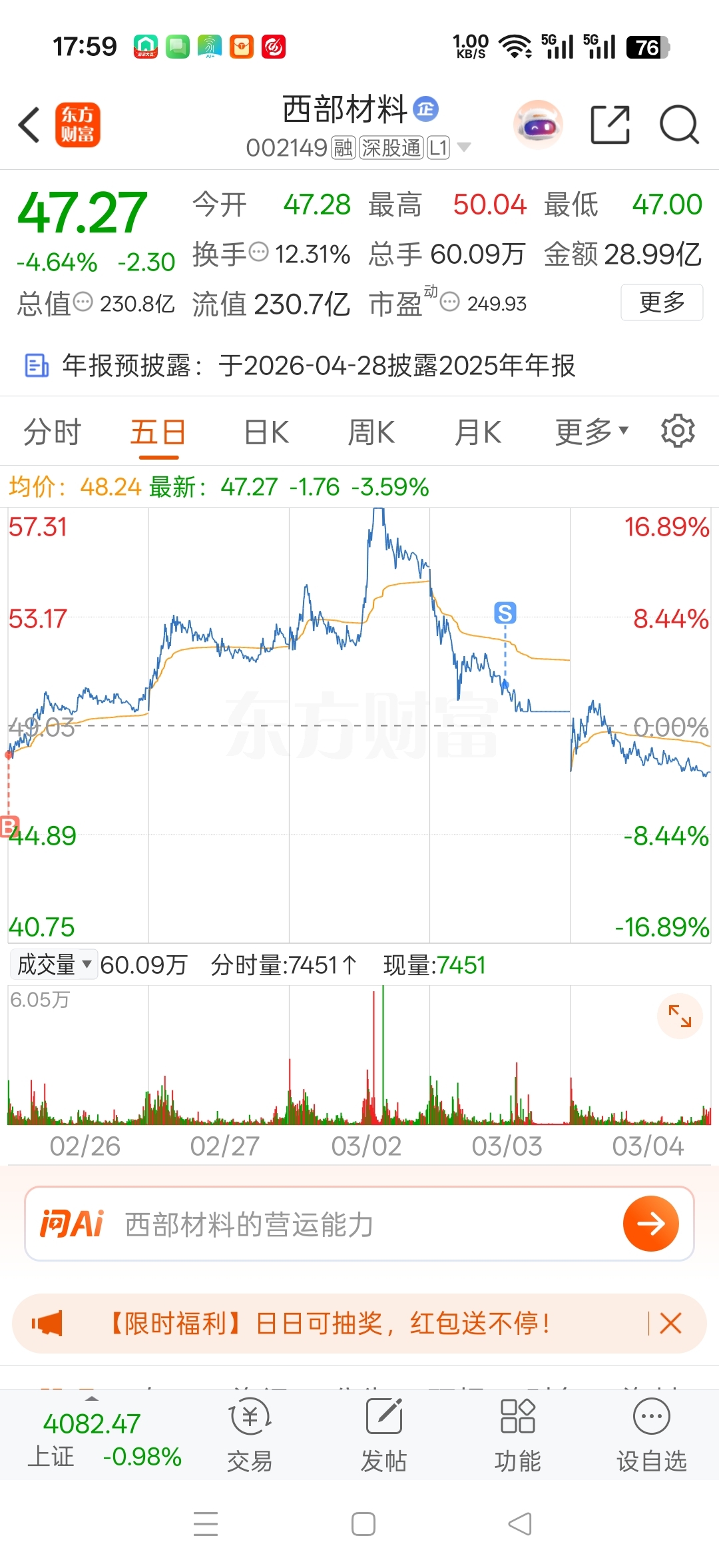 $西部材料(SZ002149)$ 明天想再进来