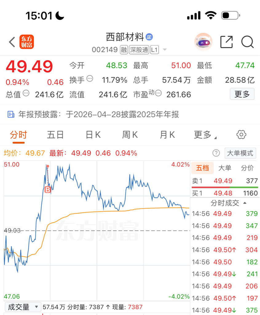 $西部材料(SZ002149)$ 芭比Q了
