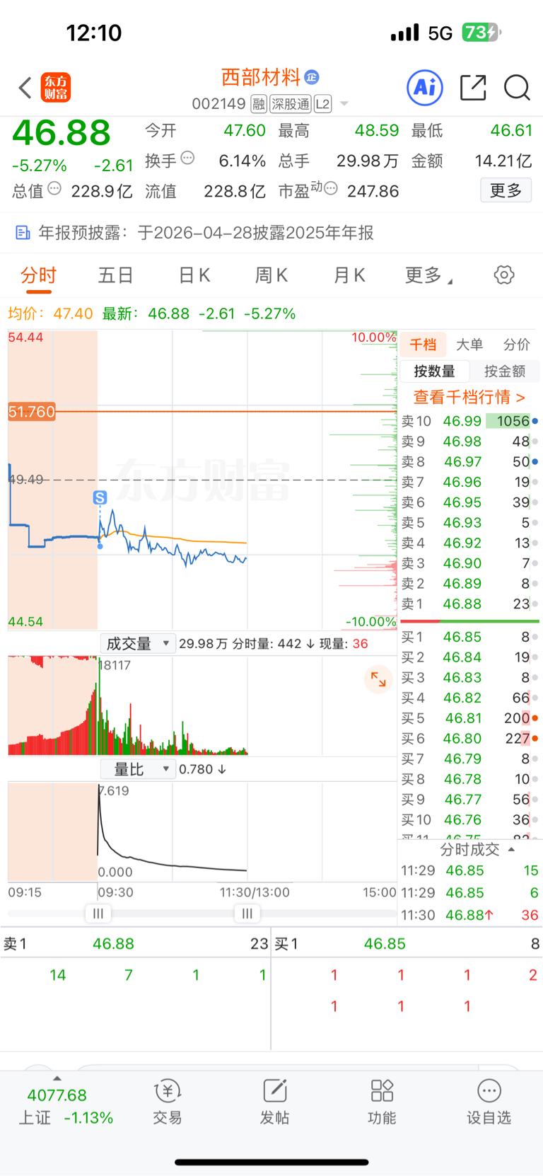$西部材料(SZ002149)$ 认命了,卖了一半