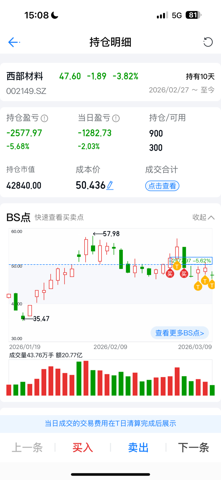 $西部材料(SZ002149)$ 拿了10天 ,天天亏天天补 踏吗的