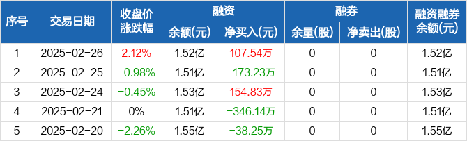 通润装备:融资净买入107.54万元,融资余额1.52亿元(02-26)