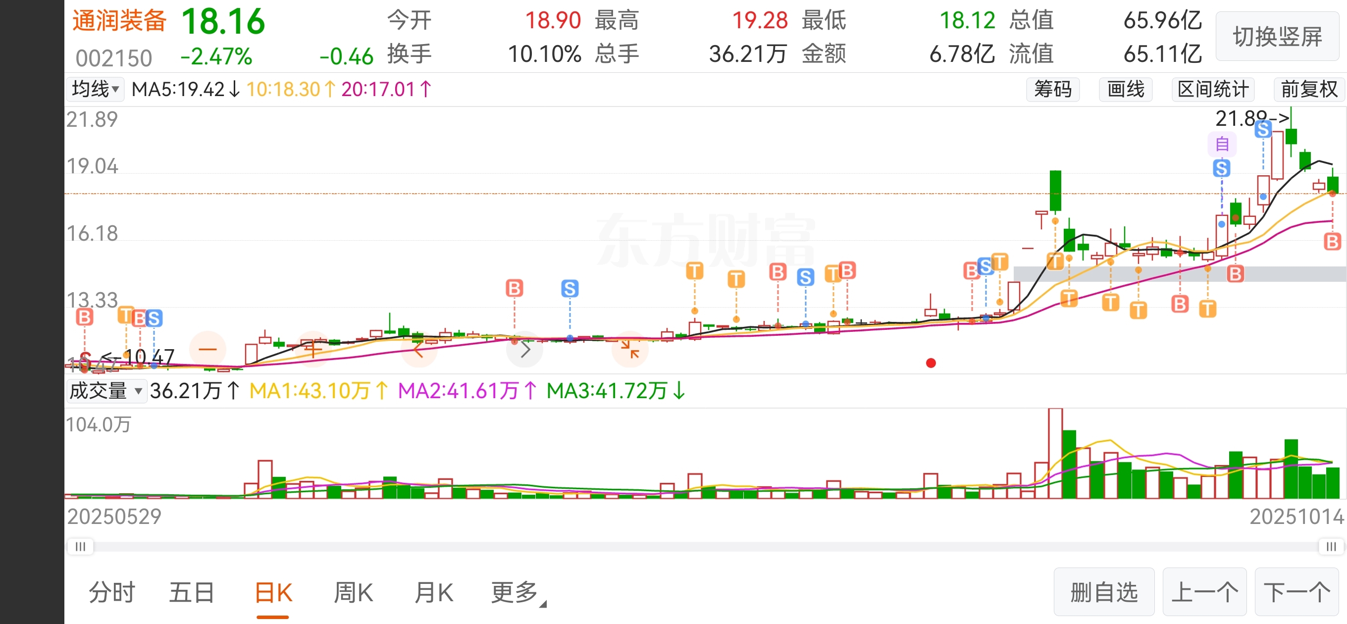 $通润装备(SZ002150)$ 18块多的时候卖飞了,今天终于让我接回来了!看到25!