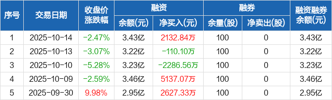 通润装备:融资净买入2132.84万元,融资余额3.43亿元(10-14)