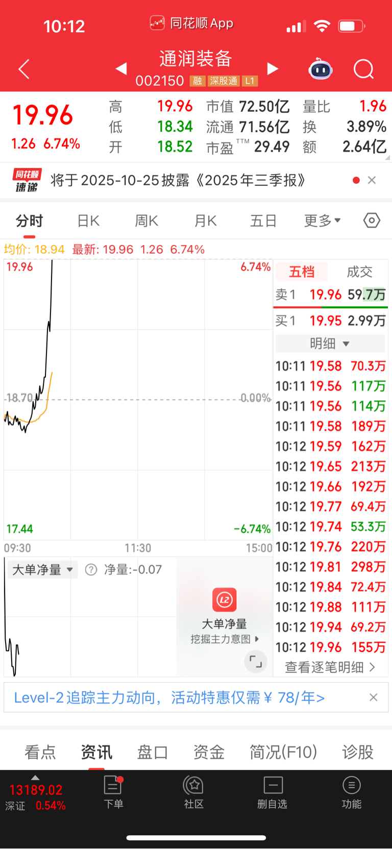苍天不负有心人啊不枉我昨天噶一半盟固利空出位置来换今天的通润装备,窜天猴似的往上冲!$通润装备(SZ002150)$