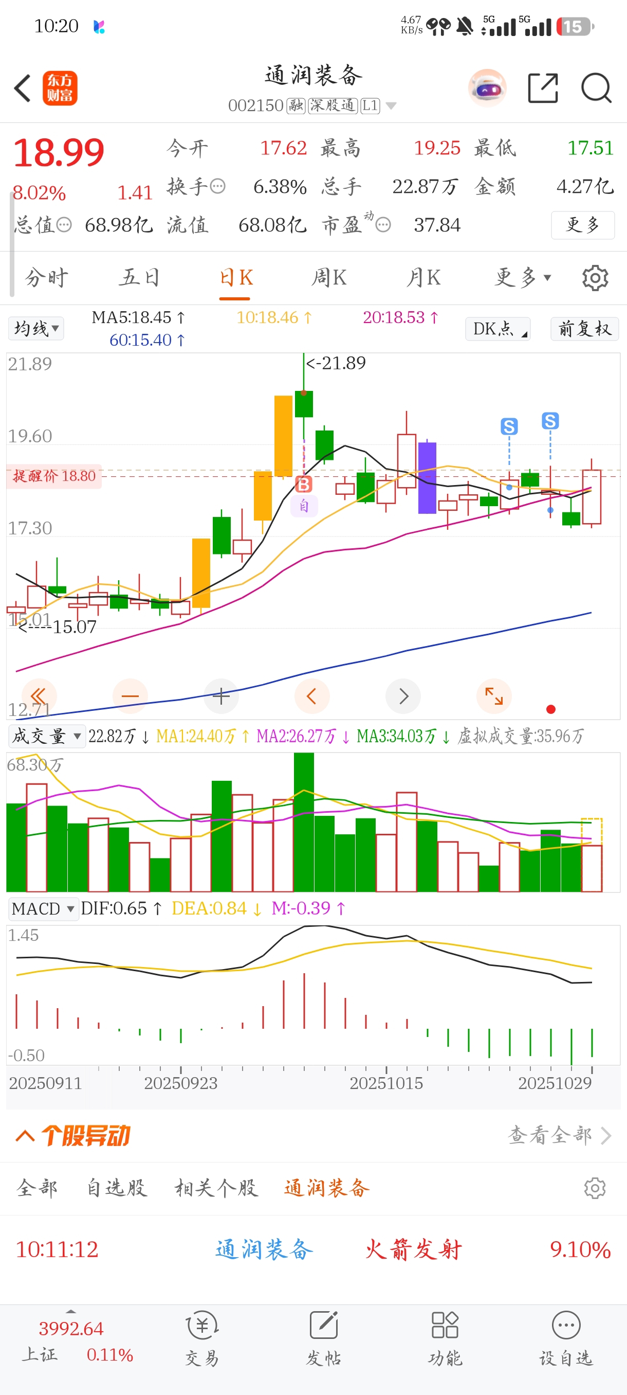 $通润装备(SZ002150)$ 10月9号买的,前些天卖了大部分进了山子,通润差点拉黑。