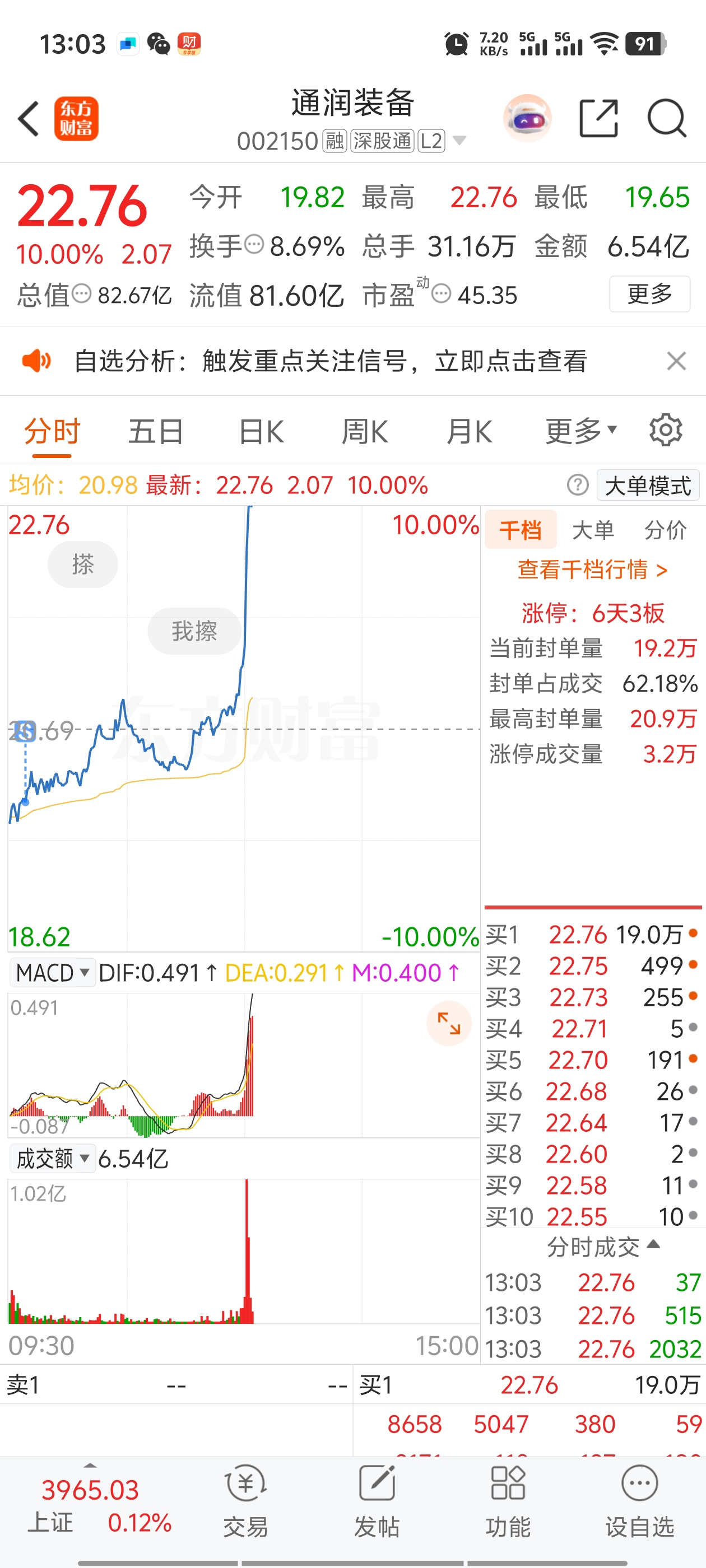 $通润装备(SZ002150)$ 我建议你们每人众筹补点钱给我因为我买啥股票就跌我卖啥股票啥就涨停,我今天不卖你们涨停不了,不然我明天再买一点跌停搞死你们