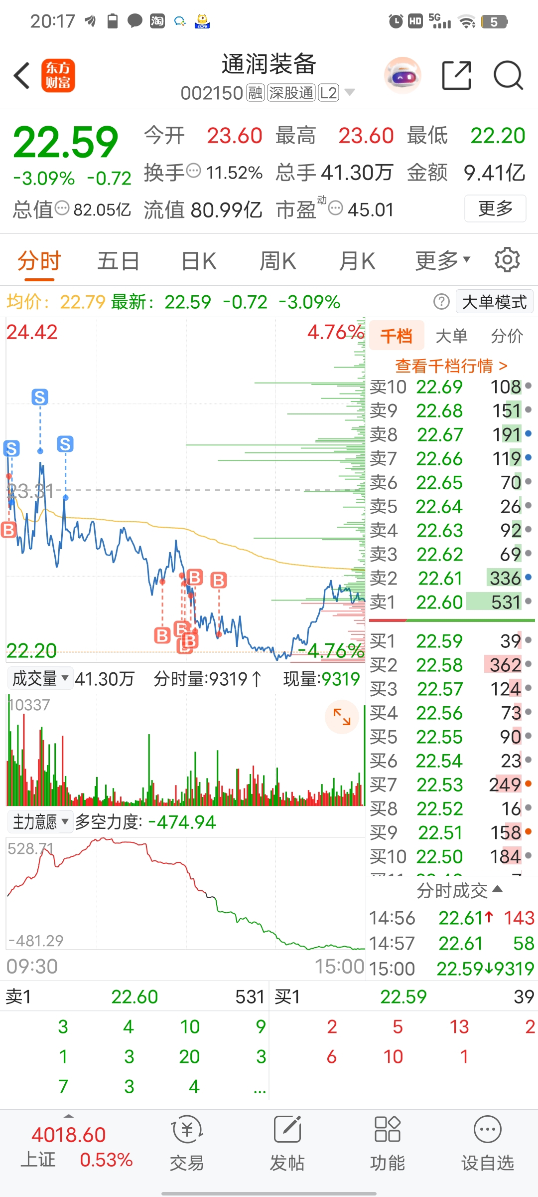 别人恐慌我贪婪,赌一把吧。T到22.73成本了。