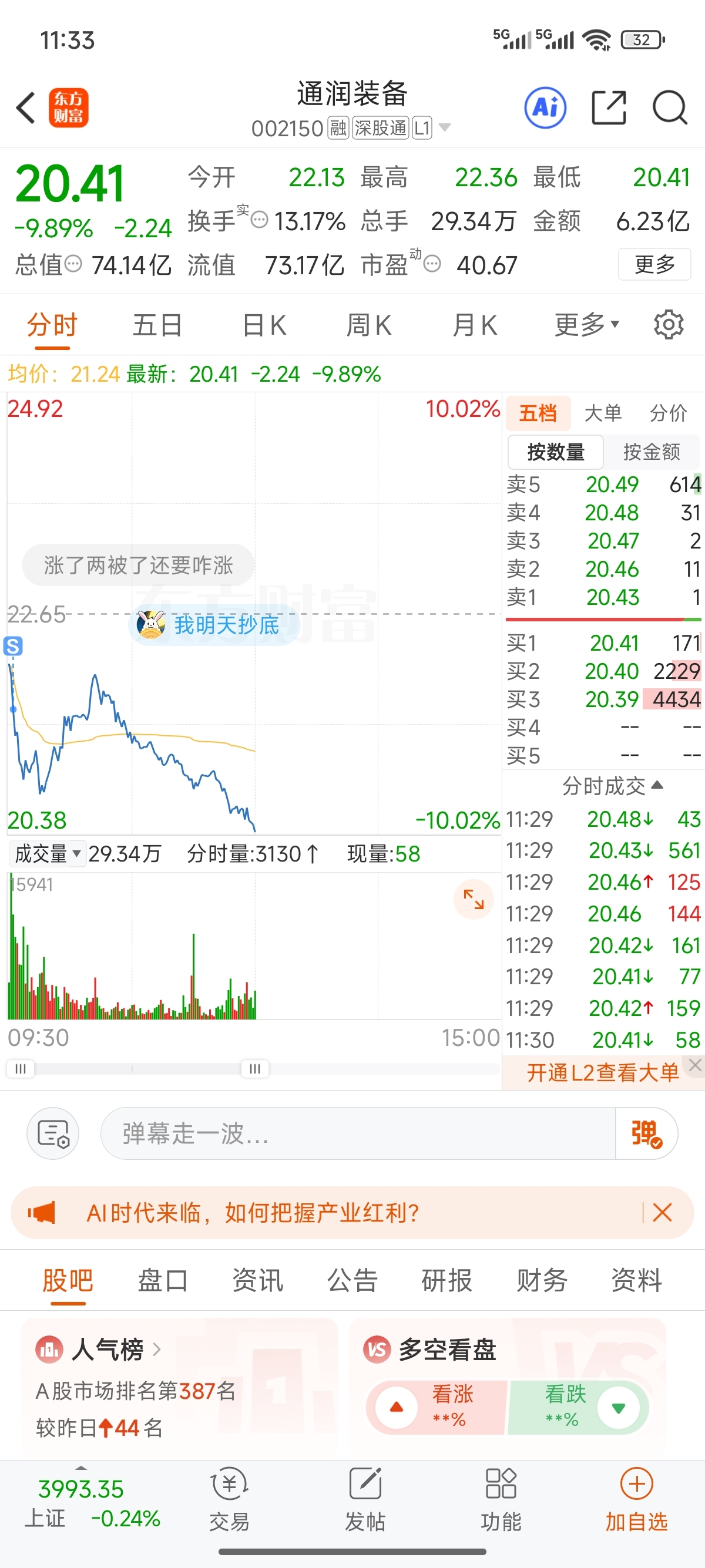 $通润装备(SZ002150)$ 果断割肉跑了
