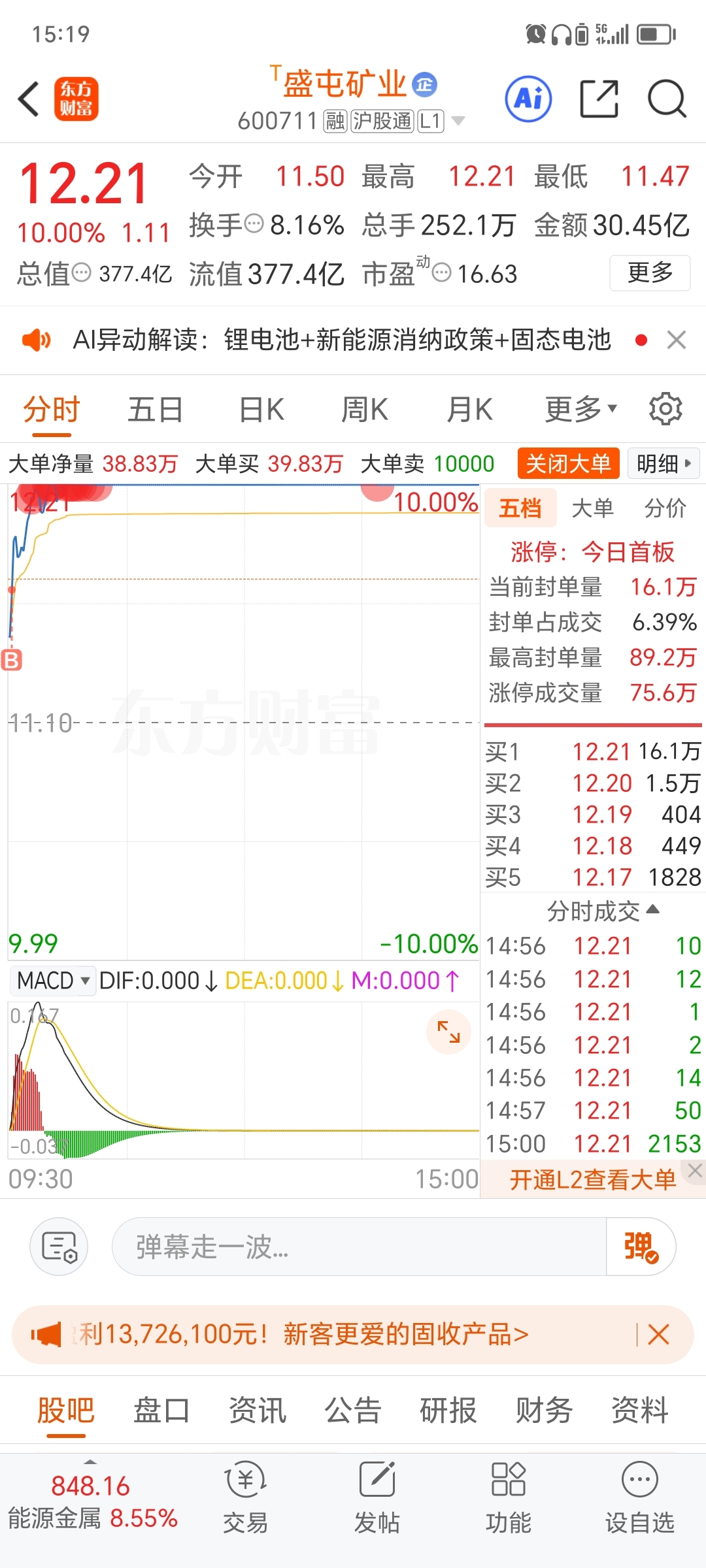 恭喜昨天买入的朋友们,明天还有一个涨停呢