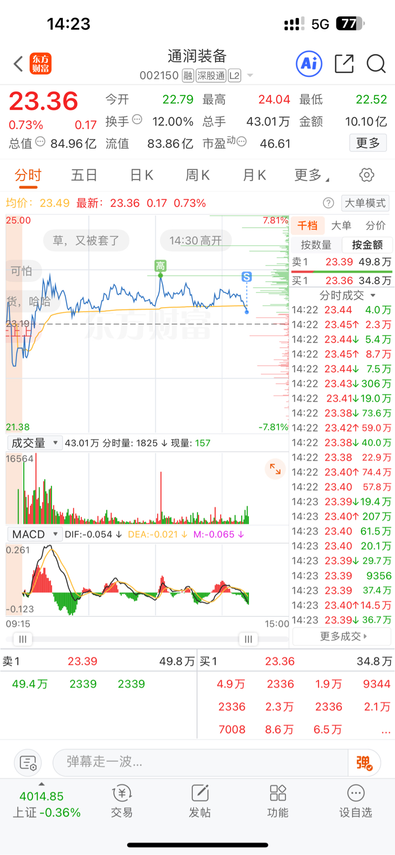 $通润装备(SZ002150)$ 跌破均线,明少获利了结