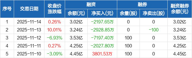 通润装备:连续4日融资净偿还累计1.44亿元(11-14)