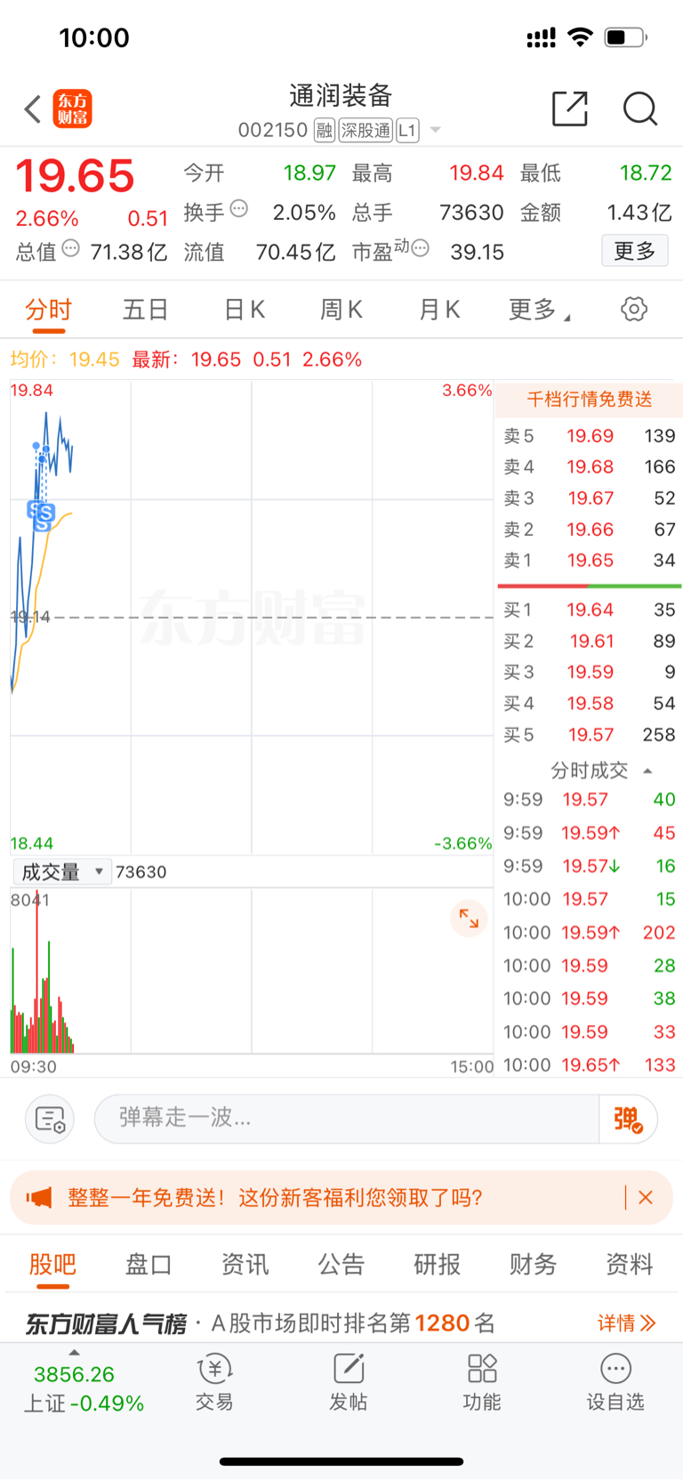 $通润装备(SZ002150)$ 大盘不稳,先出