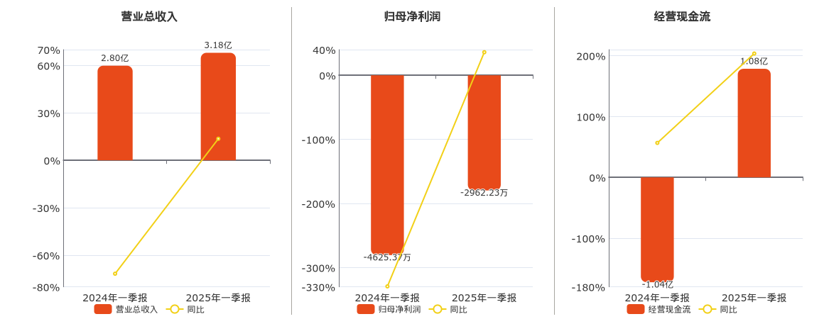 公司营业总收入为3.18亿元。归母净利润为-2962.23万元。经营活动现金净流入为1.08亿元。