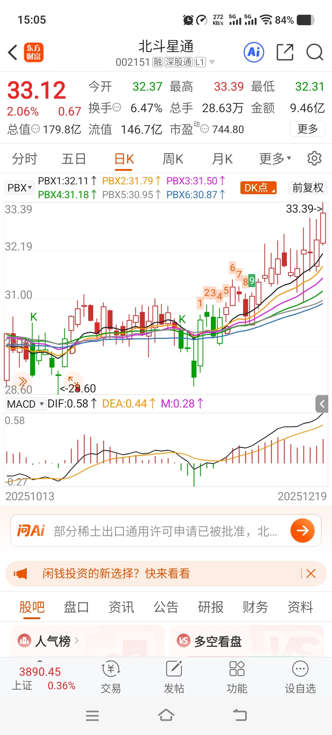 $北斗星通(SZ002151)$ 今天不错喔