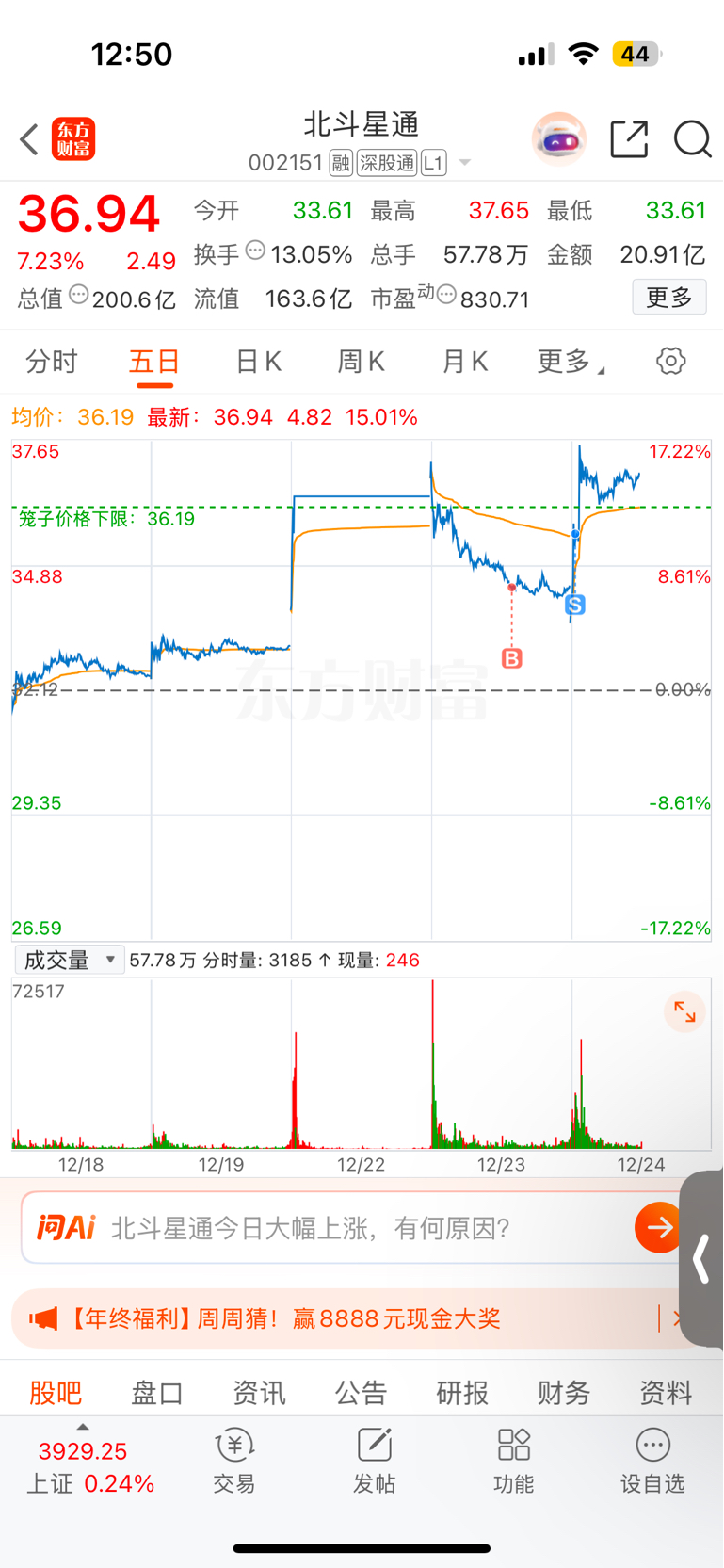 $北斗星通(SZ002151)$ 韭菜啊一点蚊子就跑了