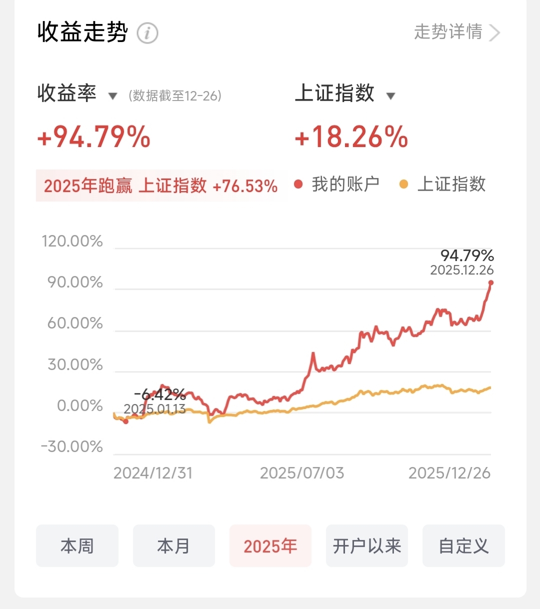 $北斗星通(SZ002151)$ 何其有幸,今年运到我的贵人!这一年来年底复盘才发现,从账户一片绿,到现在月月红,是你一路带我走出低谷,不仅赚了钱,还学到不少炒股的门道。今年5月份从股吧认识你,从账户亏损50%到现在盈利将近100%,真心感恩,祝新的一年投资顺利,财源滚滚!