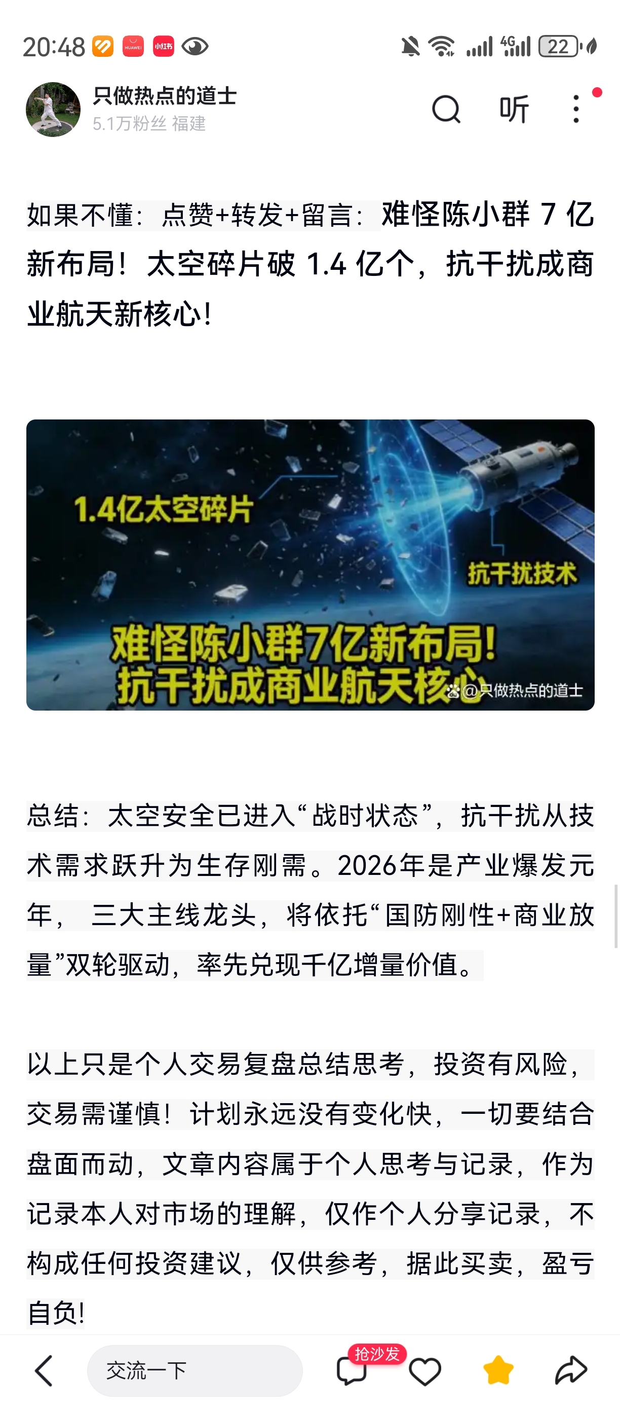 郑重声明:用户在财富号/股吧/博客等社区发表的所有信息(包括但不限于文字、视频、音频、数据及图表)仅代表个人观点,与本网站立场无关,不对您构成任何投资建议,据此操作风险自担。请勿相信代客理财、免费荐股和炒股培训等宣传内容,远离非法证券活动。请勿添加发言用户的手机号码、公众号、微博、微信及QQ等信息,谨防上当受骗!