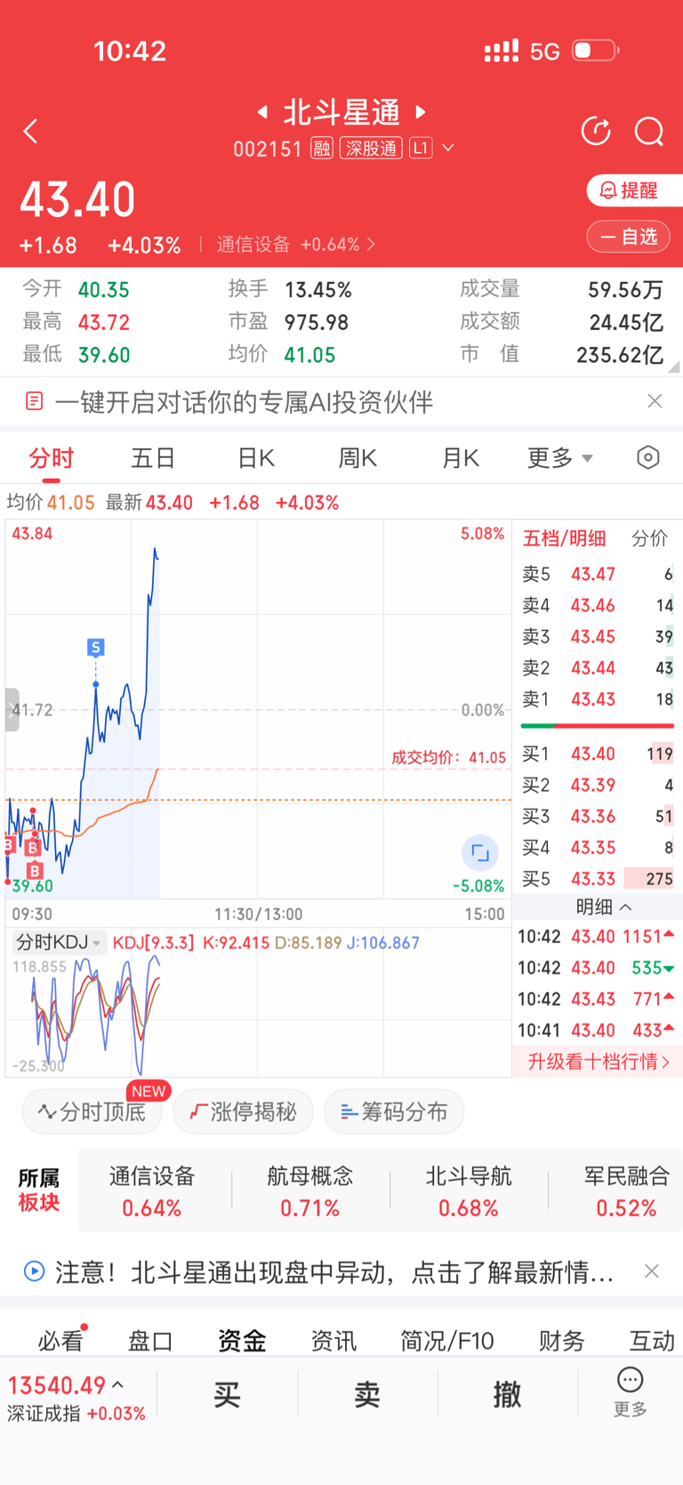 $北斗星通(SZ002151)$ T飞了,没格局的我,真难受