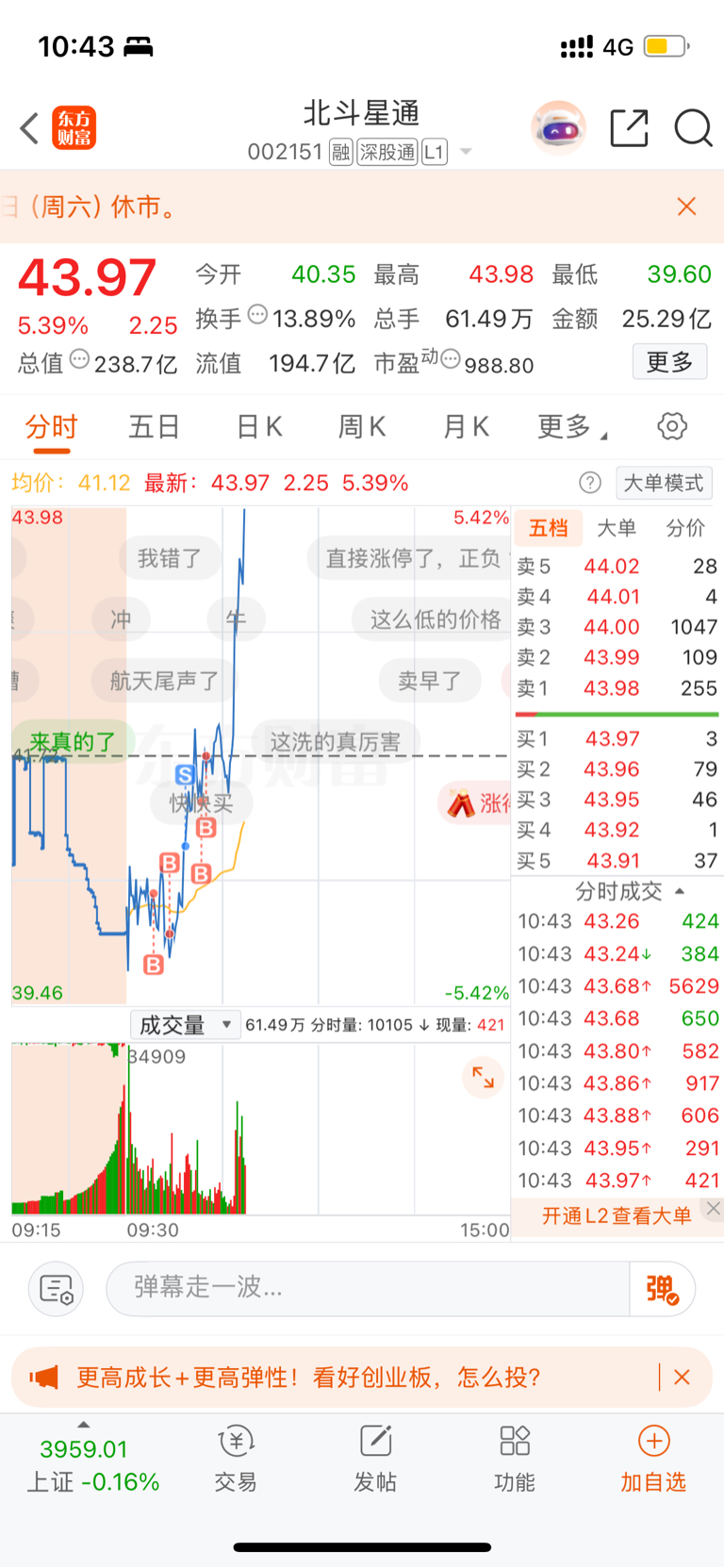 昨天42.9跑了今天低开想接但是怕暴跌一直在慢慢低吸本身挂单39.6和39.5没
