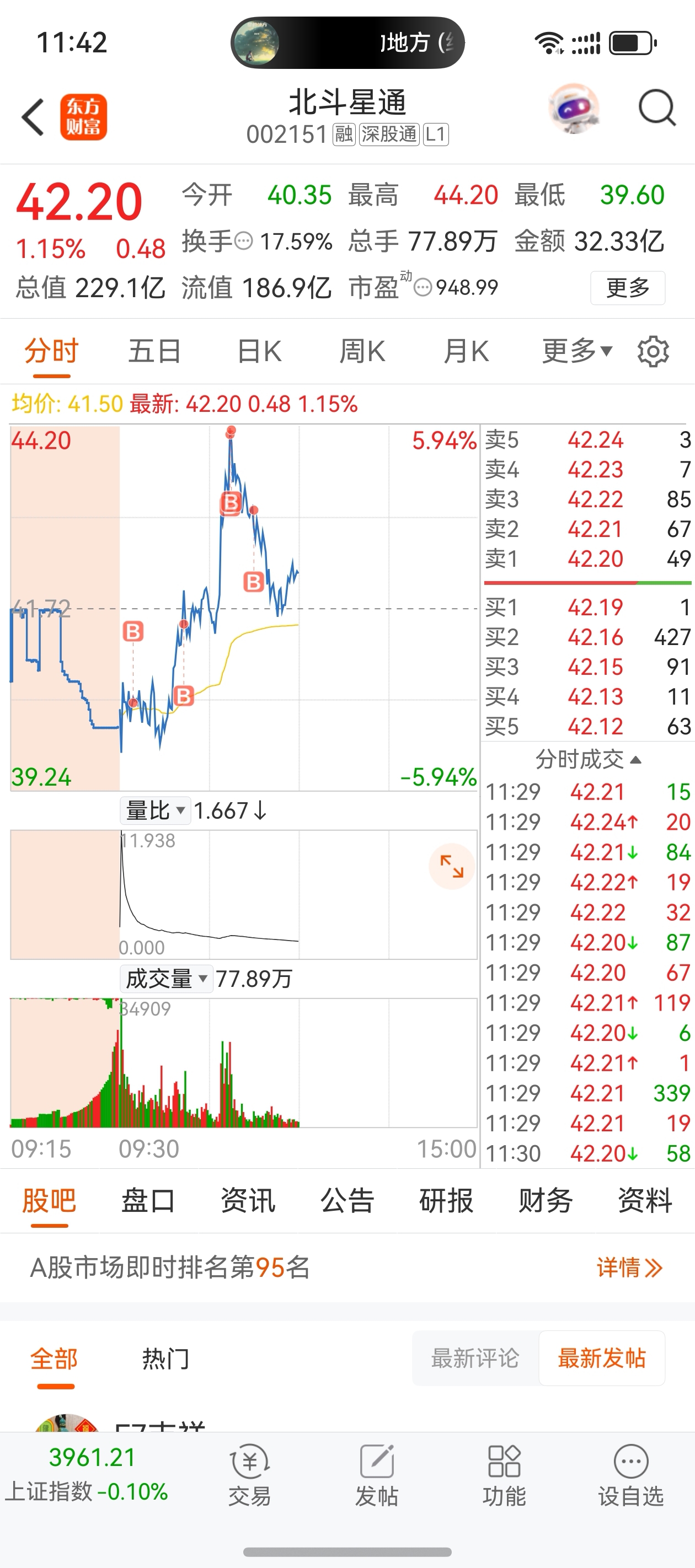$北斗星通(SZ002151)$ 大哥,看你了,我的九鼎都已经是地天板块,请主力带我吃肉。感恩