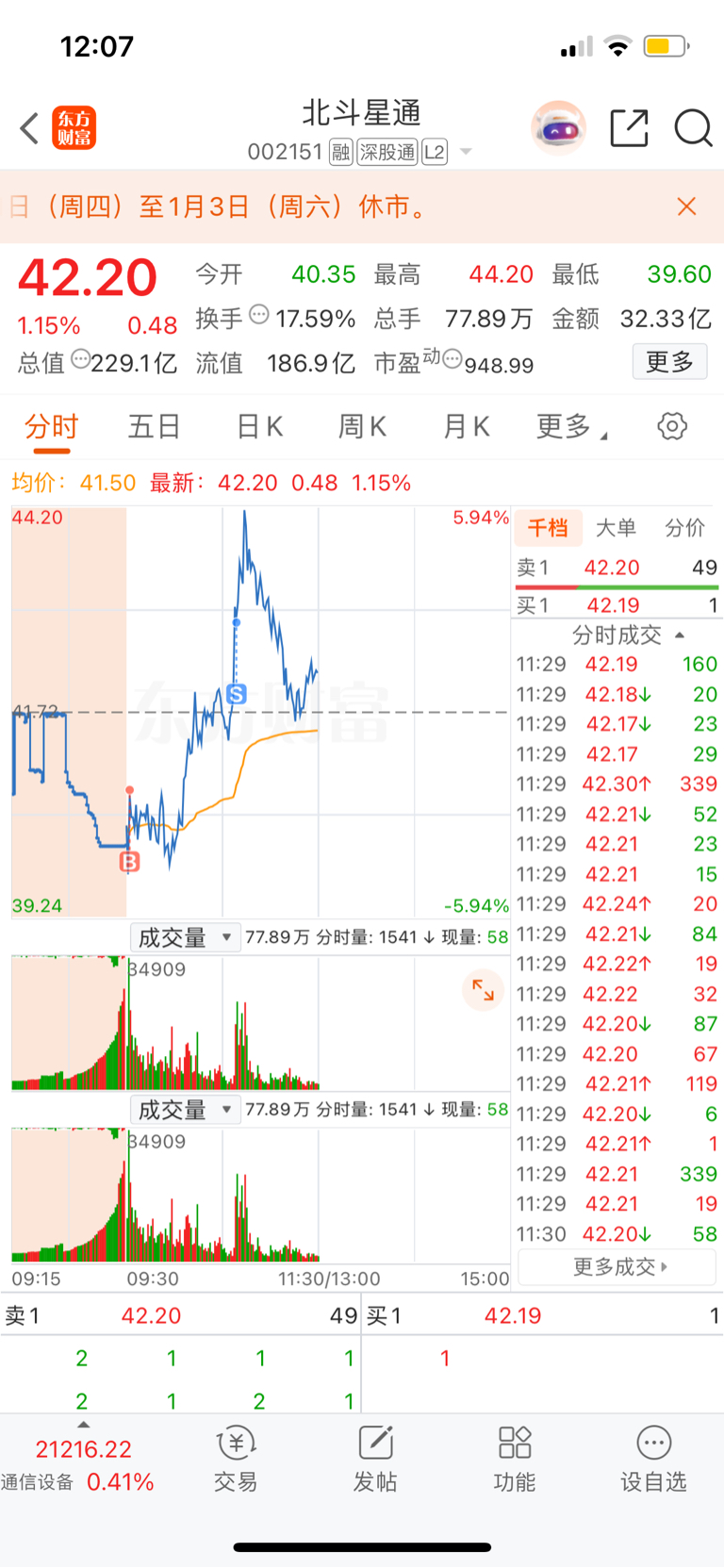 $北斗星通(SZ002151)$ 下午怎么说b还是s