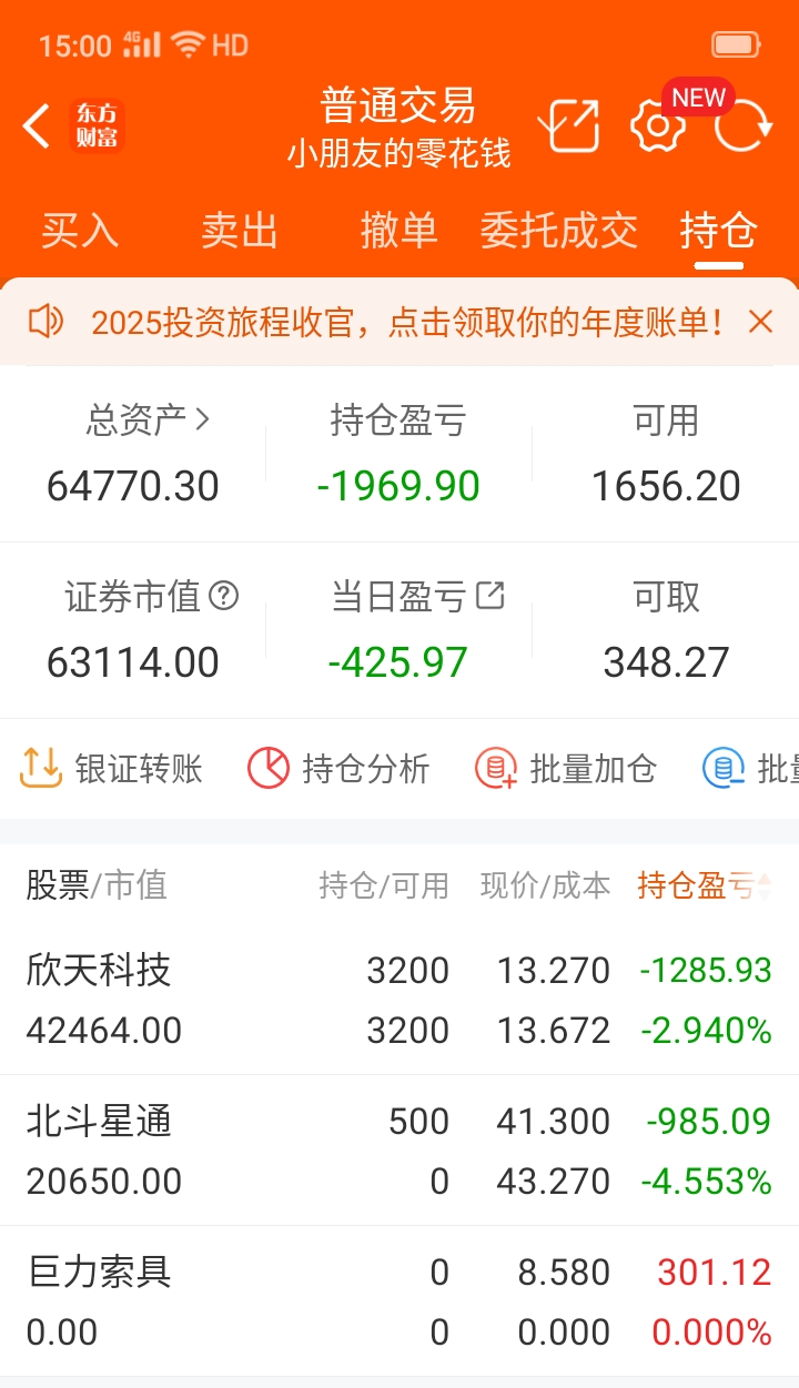 【小朋友零花钱】第46天【主账户短线利润转入:11月15000+12月38000