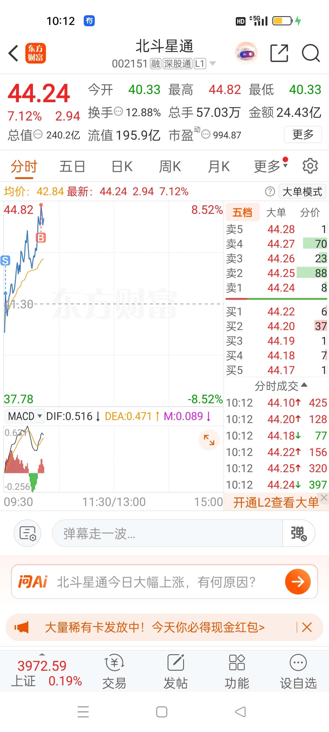 $北斗星通(SZ002151)$ 服自己