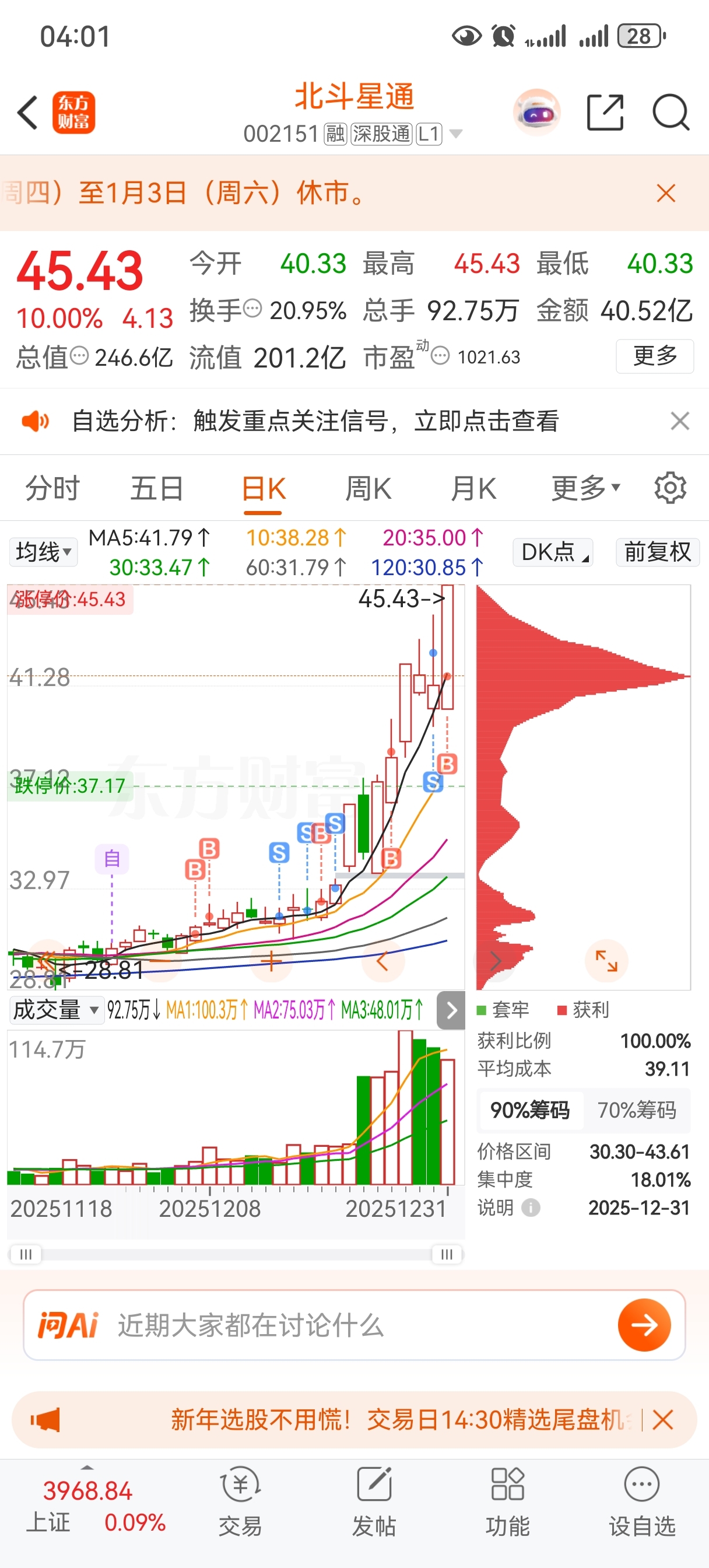 $北斗星通(SZ002151)$ 趋势票,刚启动,只要一直涨就涨不停