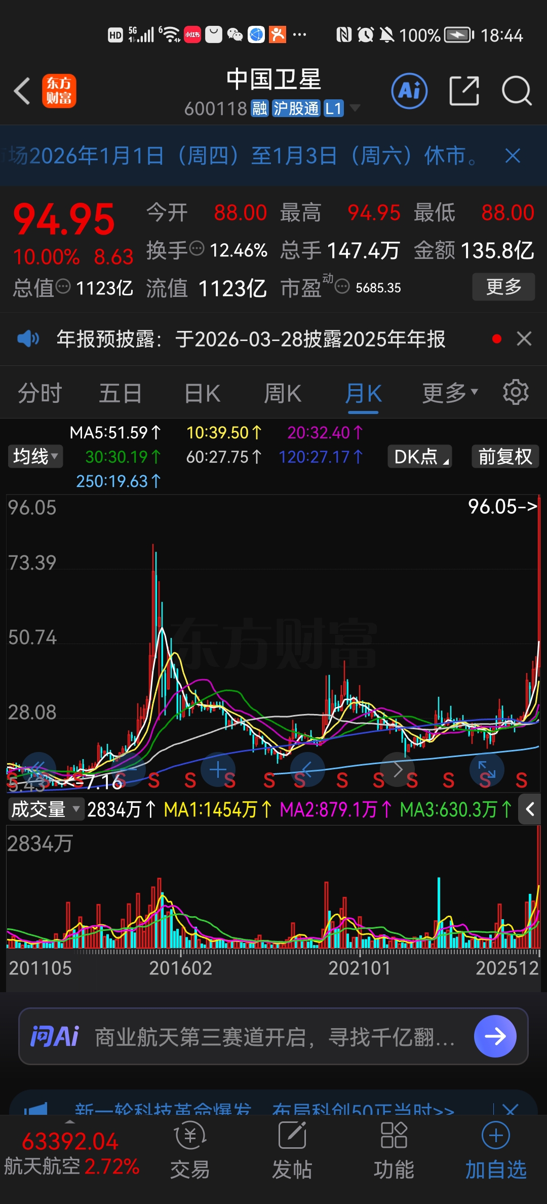 $北斗星通(SZ002151)$ 参照航天发展,中国卫星的涨幅,北斗星通应该到90以上
