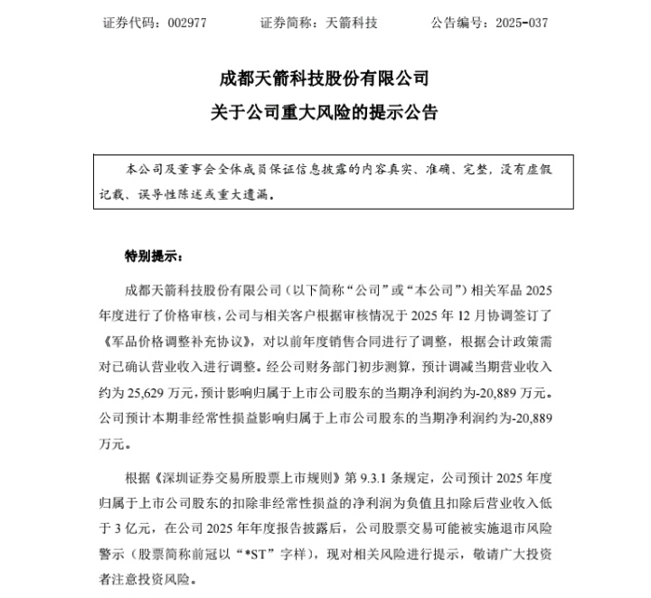 岁末天箭科技业绩爆雷,直接数板!