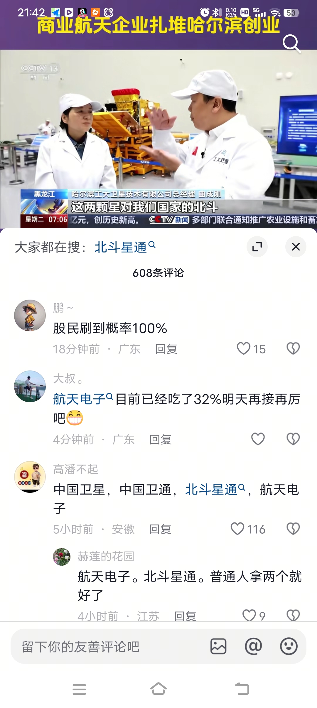 $北斗星通(SZ002151)$ 央视再给商业航天背书呢
