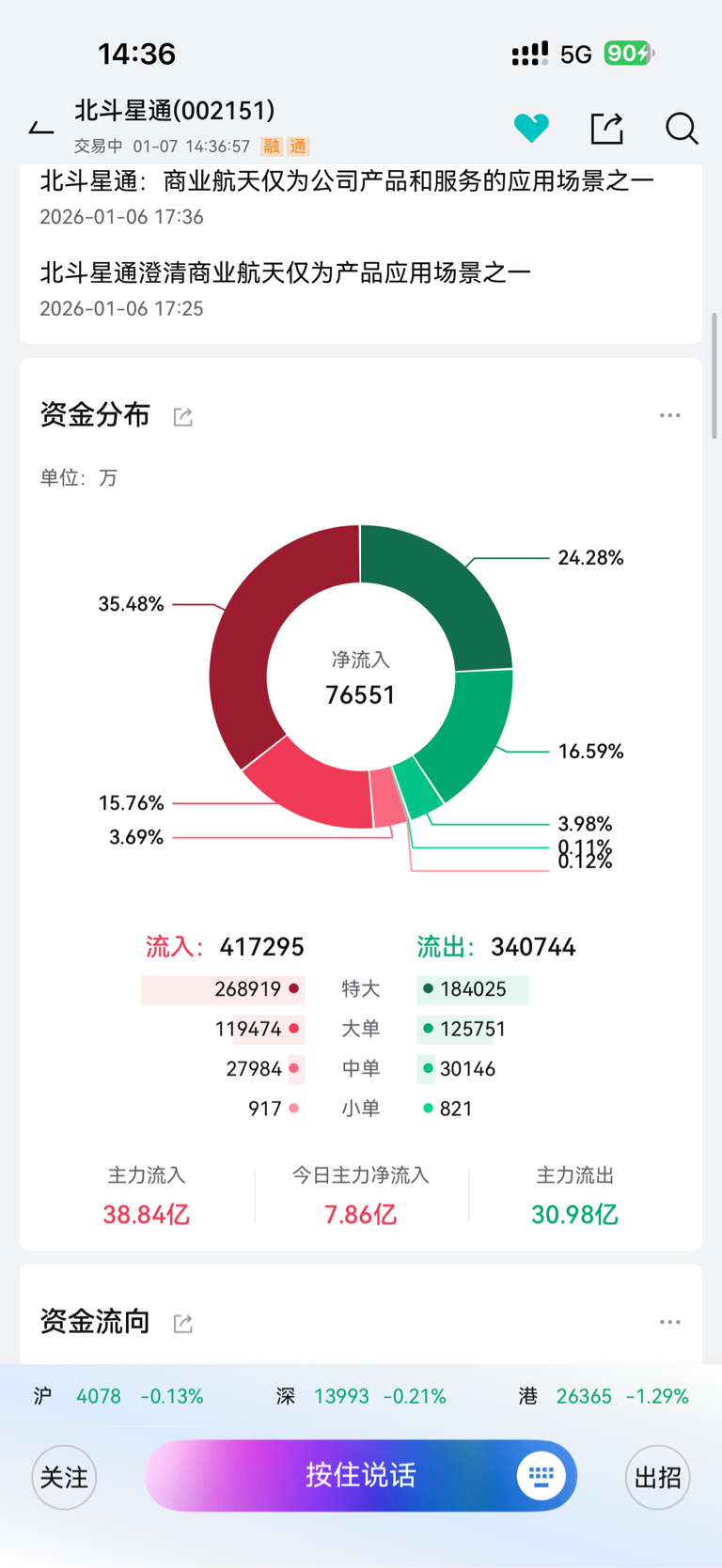 $北斗星通(SZ002151)$ 不要慌,我这软件显示在流入