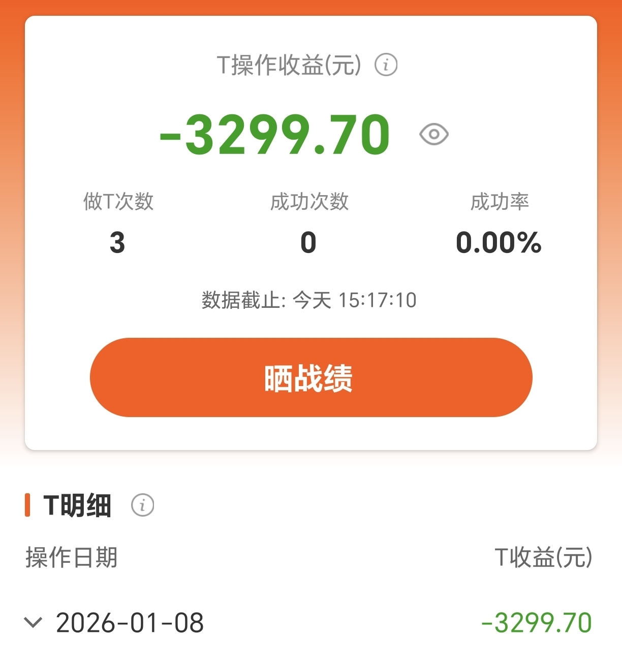 $北斗星通(SZ002151)$ 3只股票被迫做了反T,真成了SB,不动有五六千的收益,一动还亏了3000多。看了去年一年的做T记录,成功率不到50%,亏了1万多,血的教训,每次大亏都在追第二次时。7月,一只新股追第二次时亏了3万,不追的话还有赚,才过了半年,又不长记性了。各位以我为戒,少做T,要追只追一次