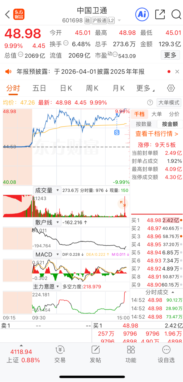 又是拍大腿的一天,把卫通卖了还是卫通强