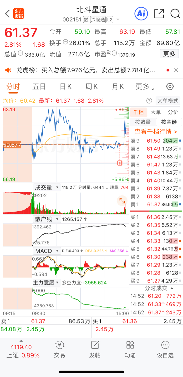 $北斗星通(SZ002151)$ 又是拍大腿的一天,把卫通卖了 还是卫通强
