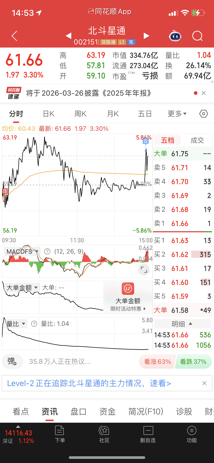 $北斗星通(SZ002151)$ 正常回调,趋势不变