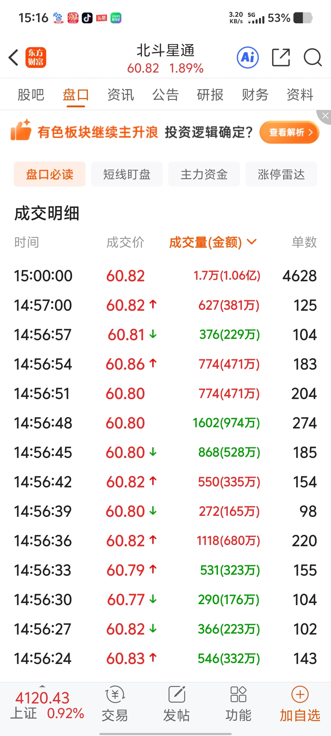 $北斗星通(SZ002151)$ 尾盘1.6个亿是买还是卖?