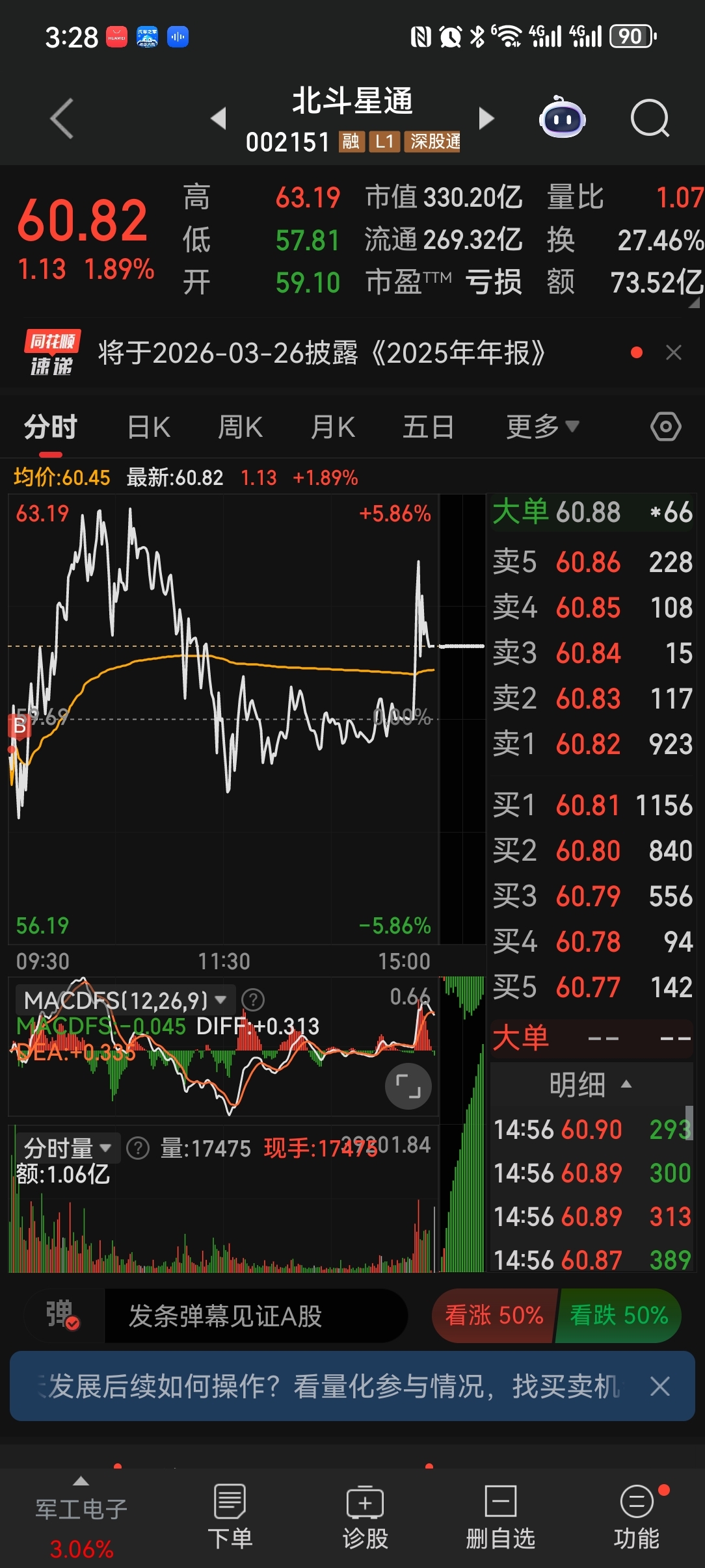 $北斗星通(SZ002151)$ 今天应该又是被消闲派和章老贼这两个砸盘的,要不然今天最少要拉5个点以上,下周一再战