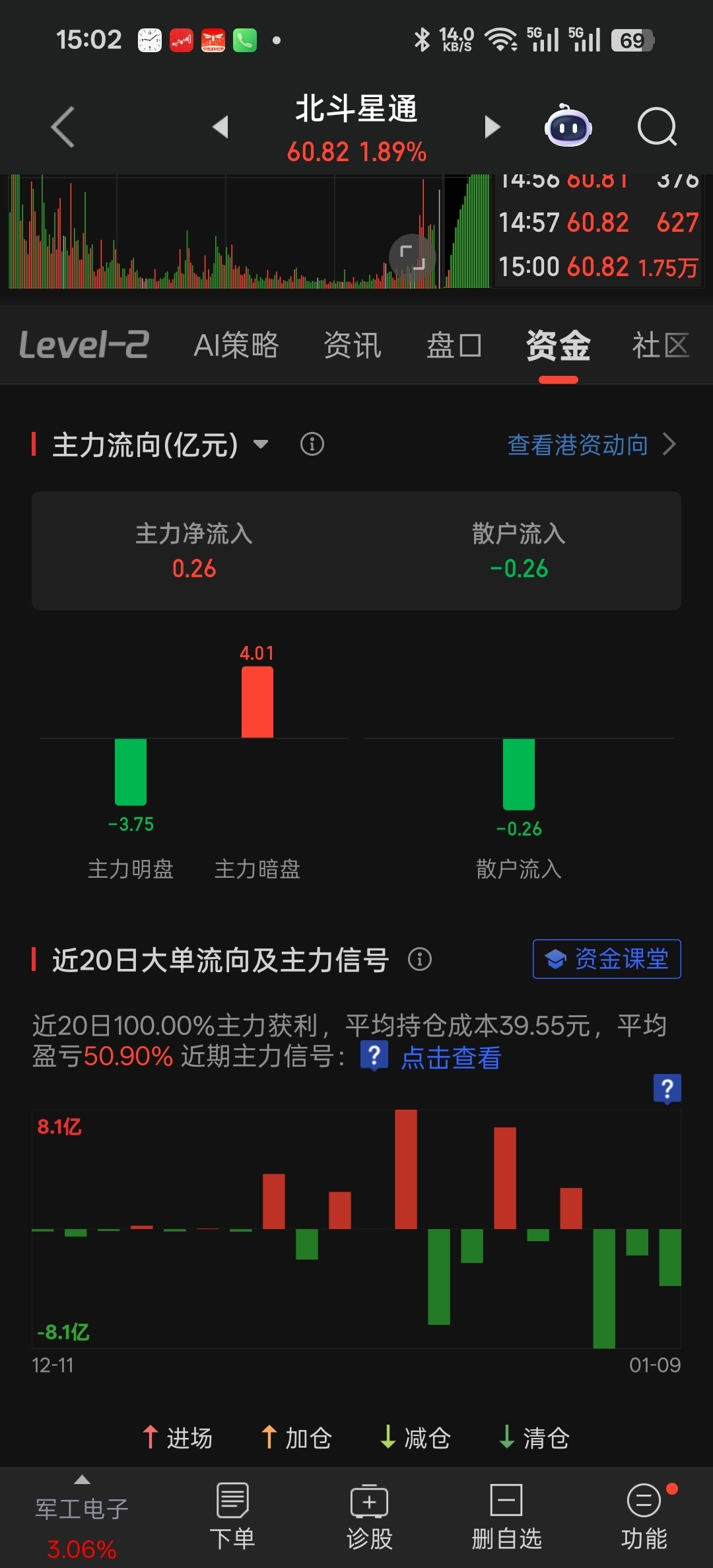$北斗星通(SZ002151)$ 暗盘流入4.01亿