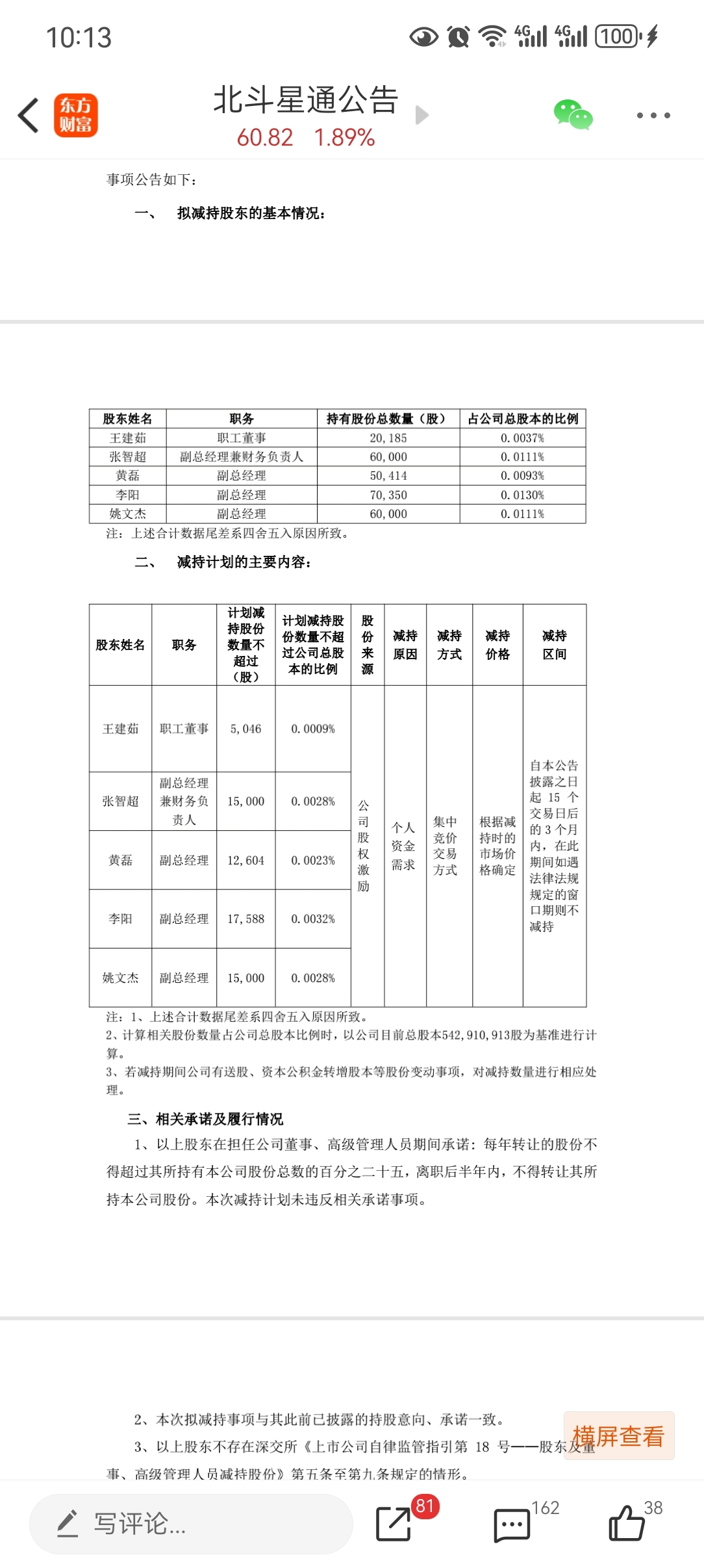 $北斗星通(SZ002151)$ 减持不到0.05 问题不大