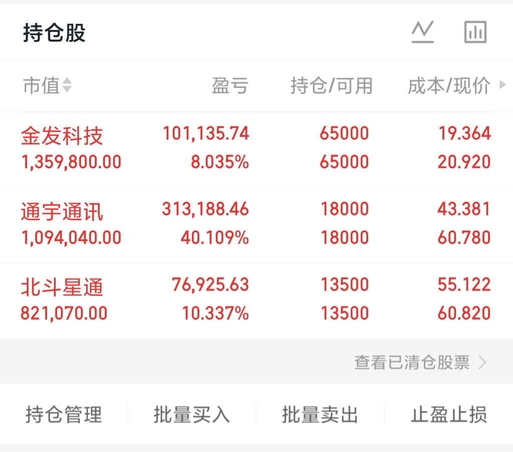 看得准,拿得稳$北斗星通(SZ002151)$ !$金发科技(SH600143)$ $通宇通讯(SZ002792)$